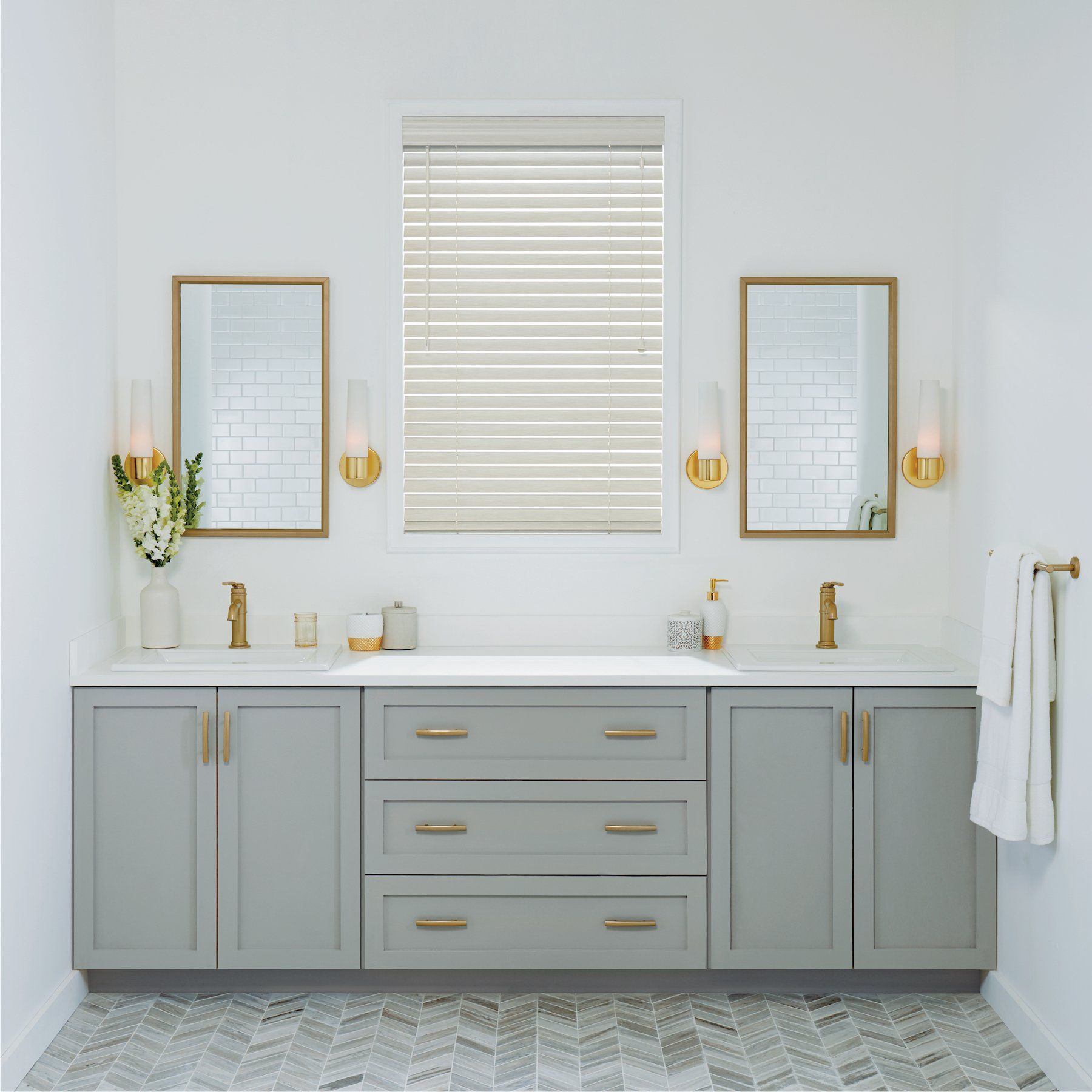 This smart alternative to wood blinds has classic good looks that don’t age. Available in realistic TruGrain® finishes or a large selection of solid colors, and with operating and decorative upgrades available. They’re guaranteed against fading, yellowing, warping or bowing—which makes them perfect for the humidity of your bathroom or rooms with full sun.