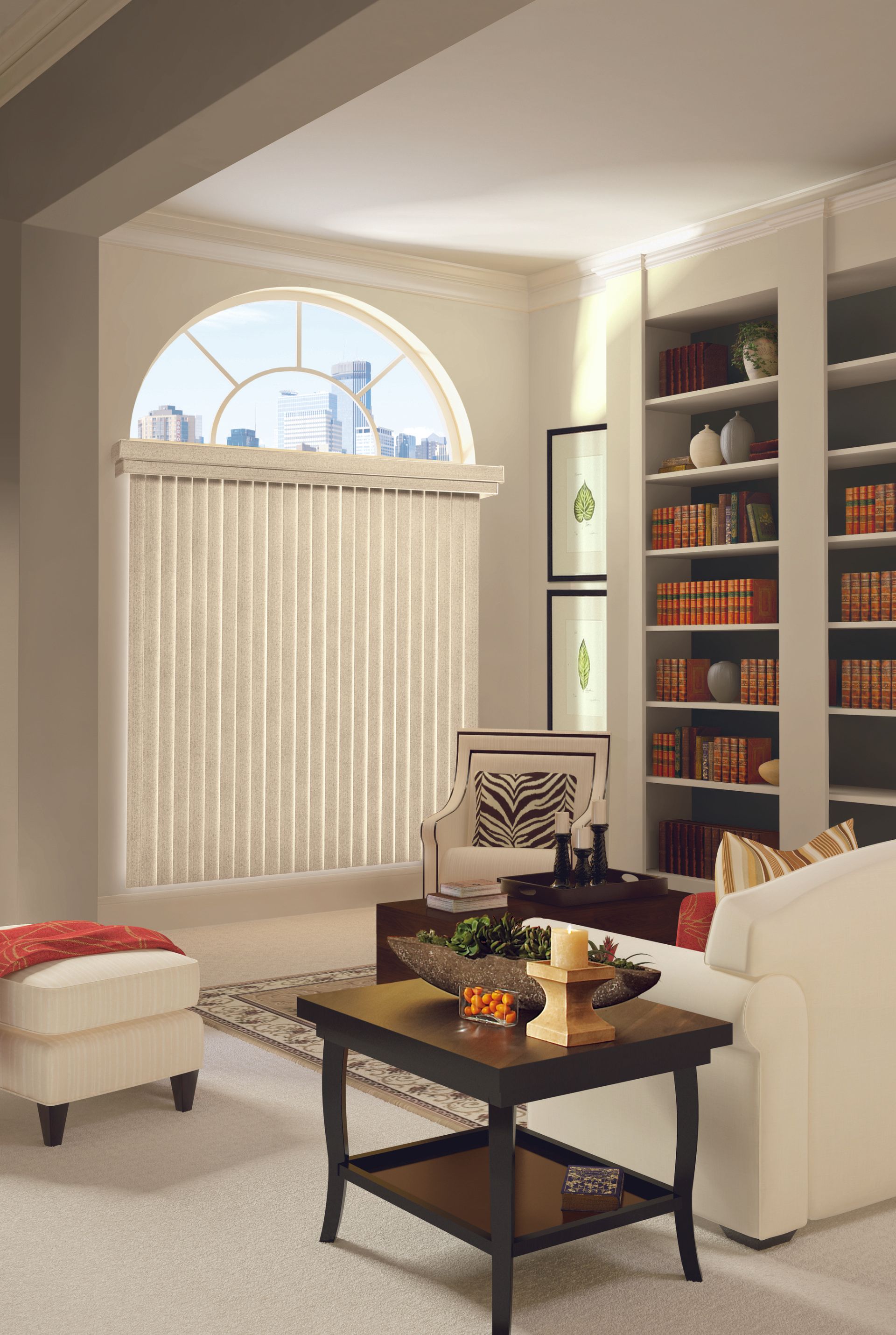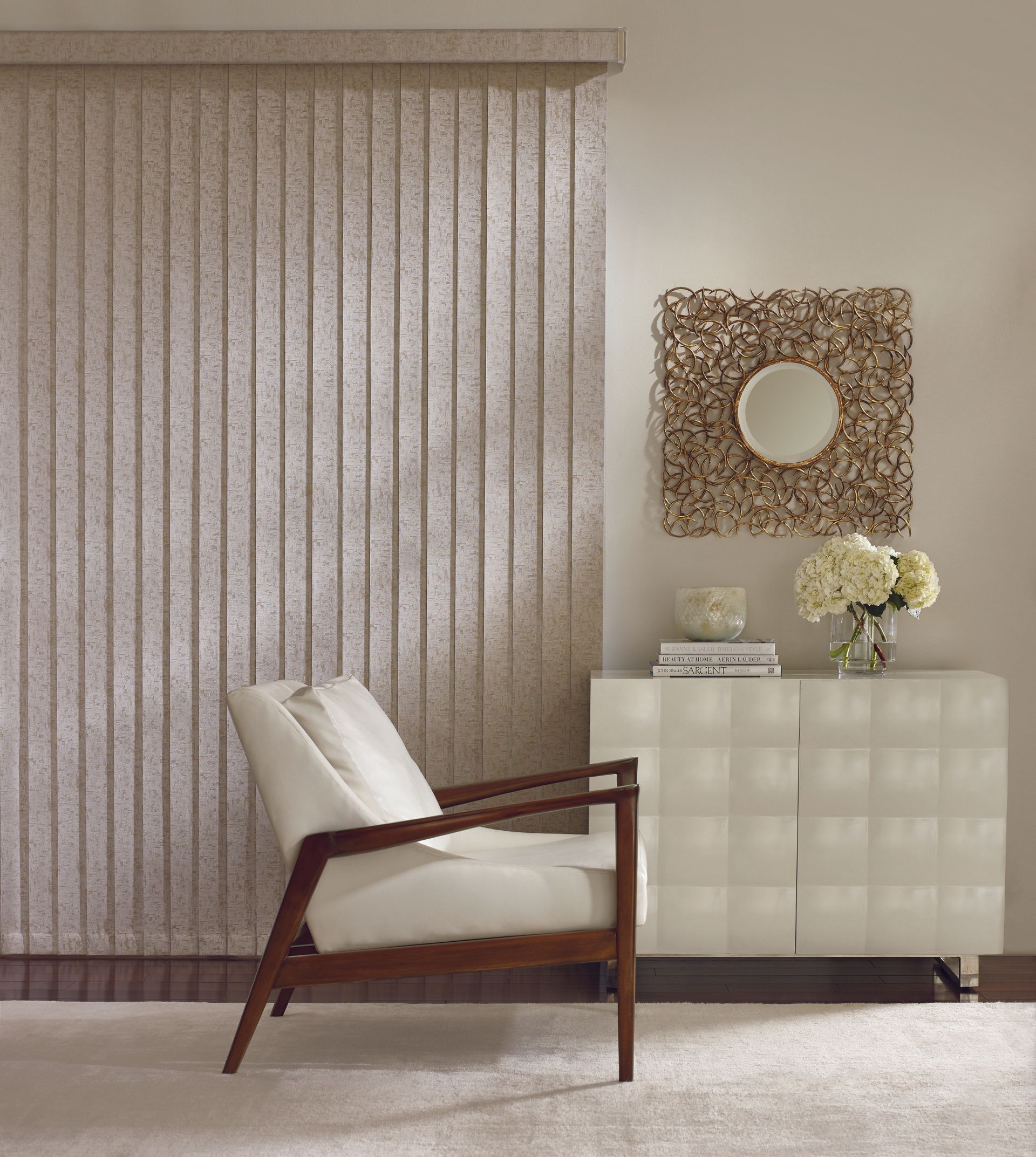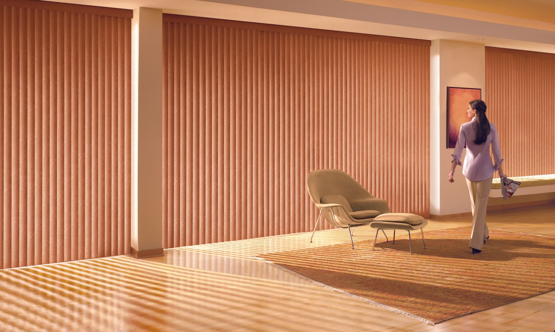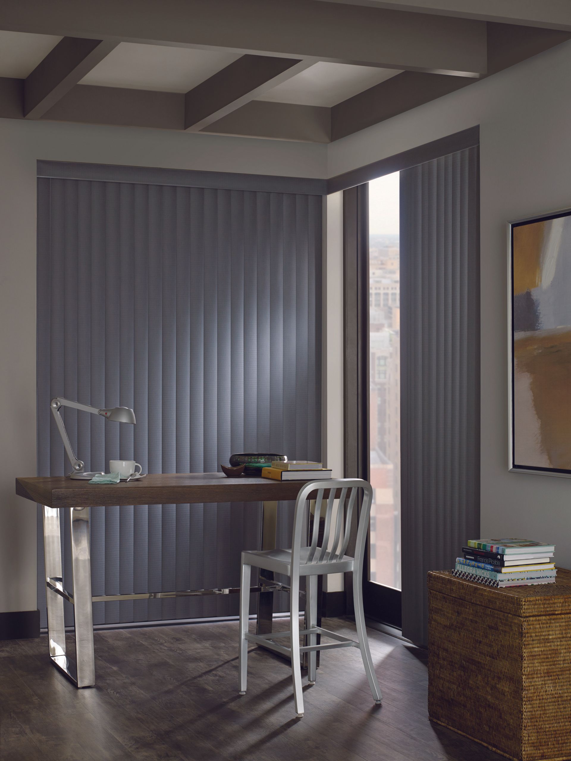 Easy, precise light control. Everything from sliding glass doors to bay windows look prettier with our Somner® Custom Vertical Blinds, which feature easy operation and superior light control. Available in a wide range of vinyl, fabric and aluminum styles and an impressive array of colors, textures and patterns.