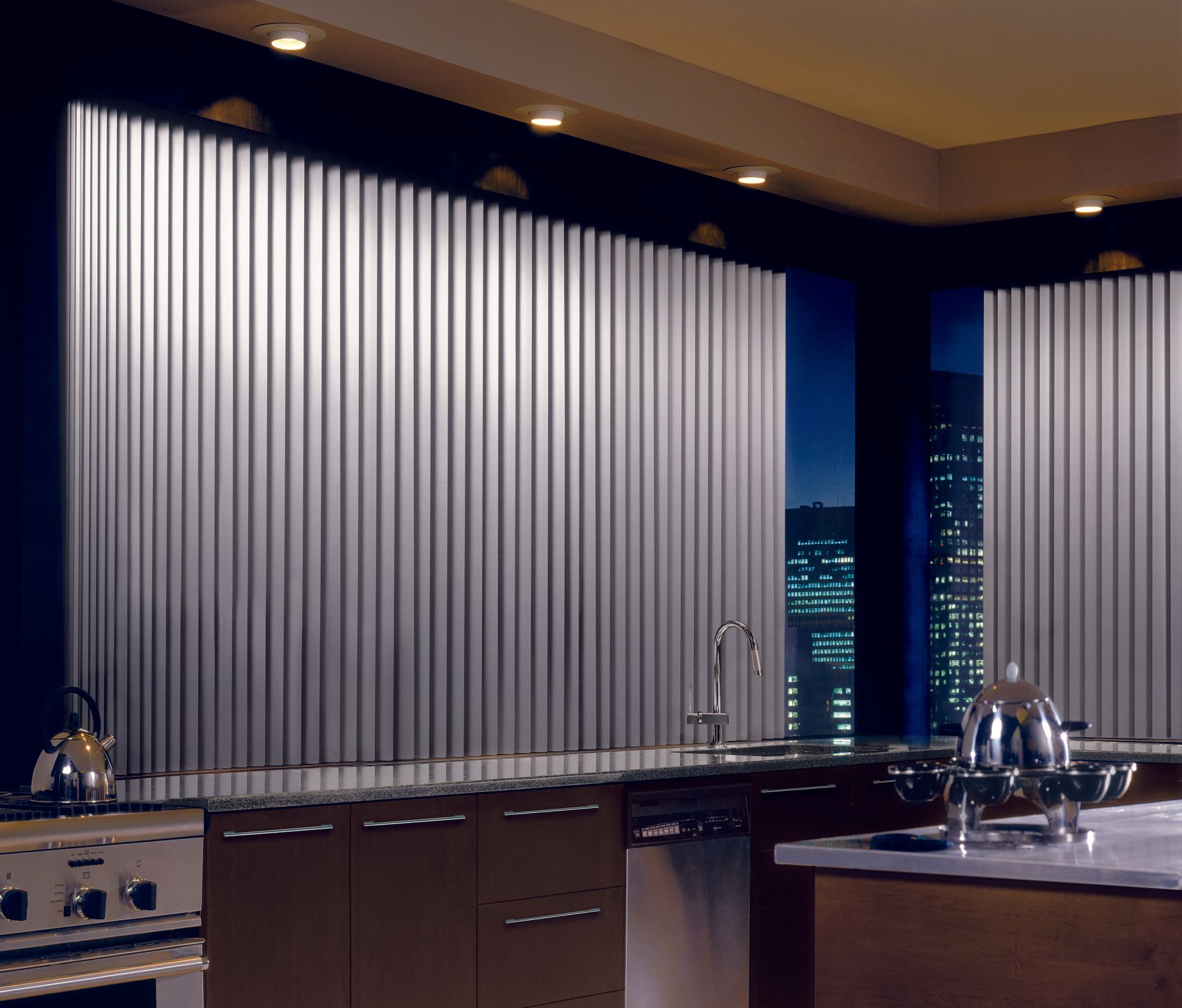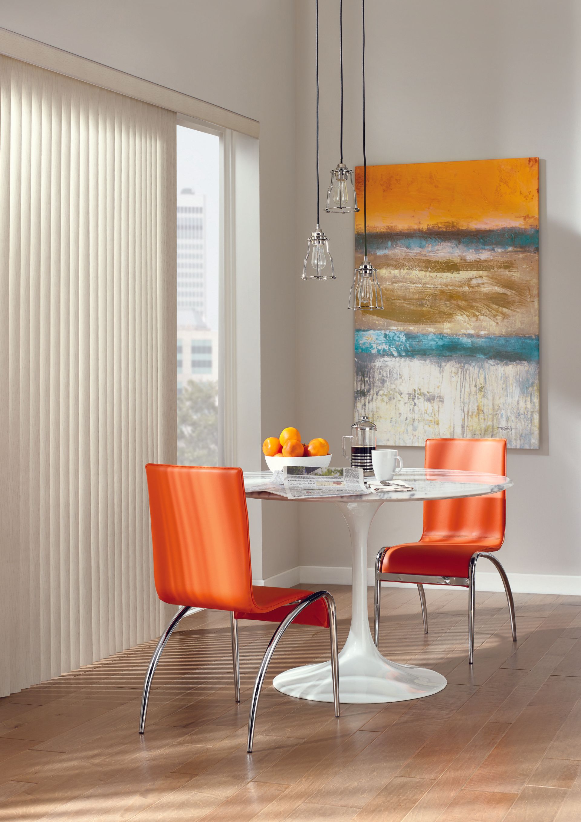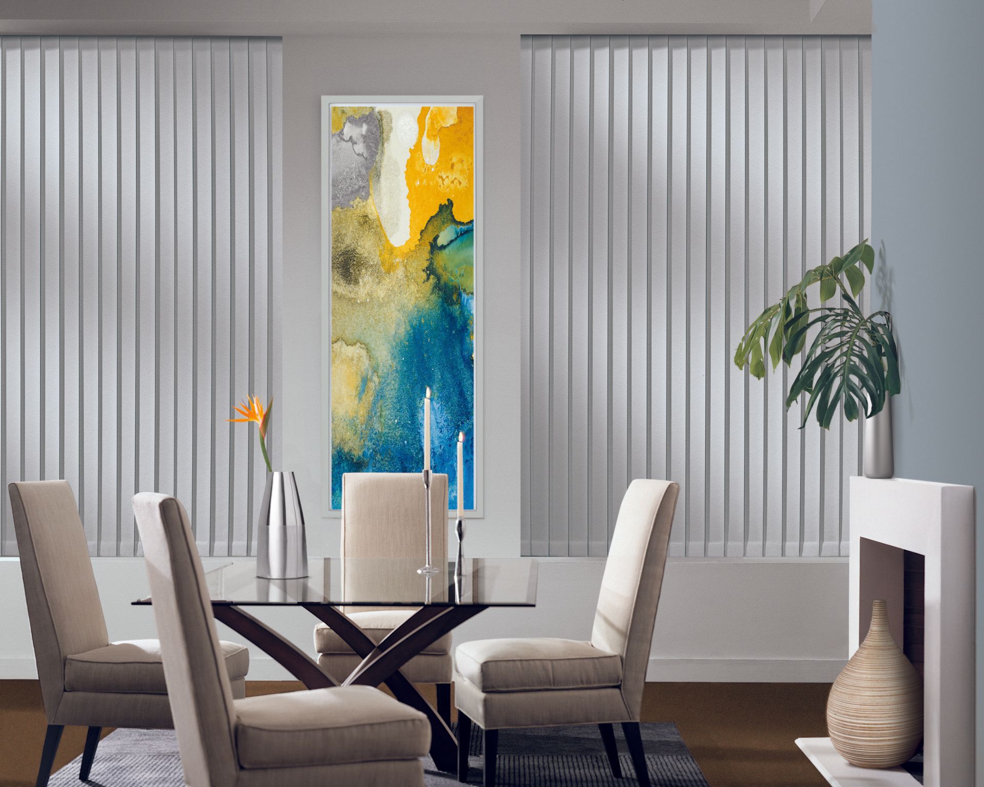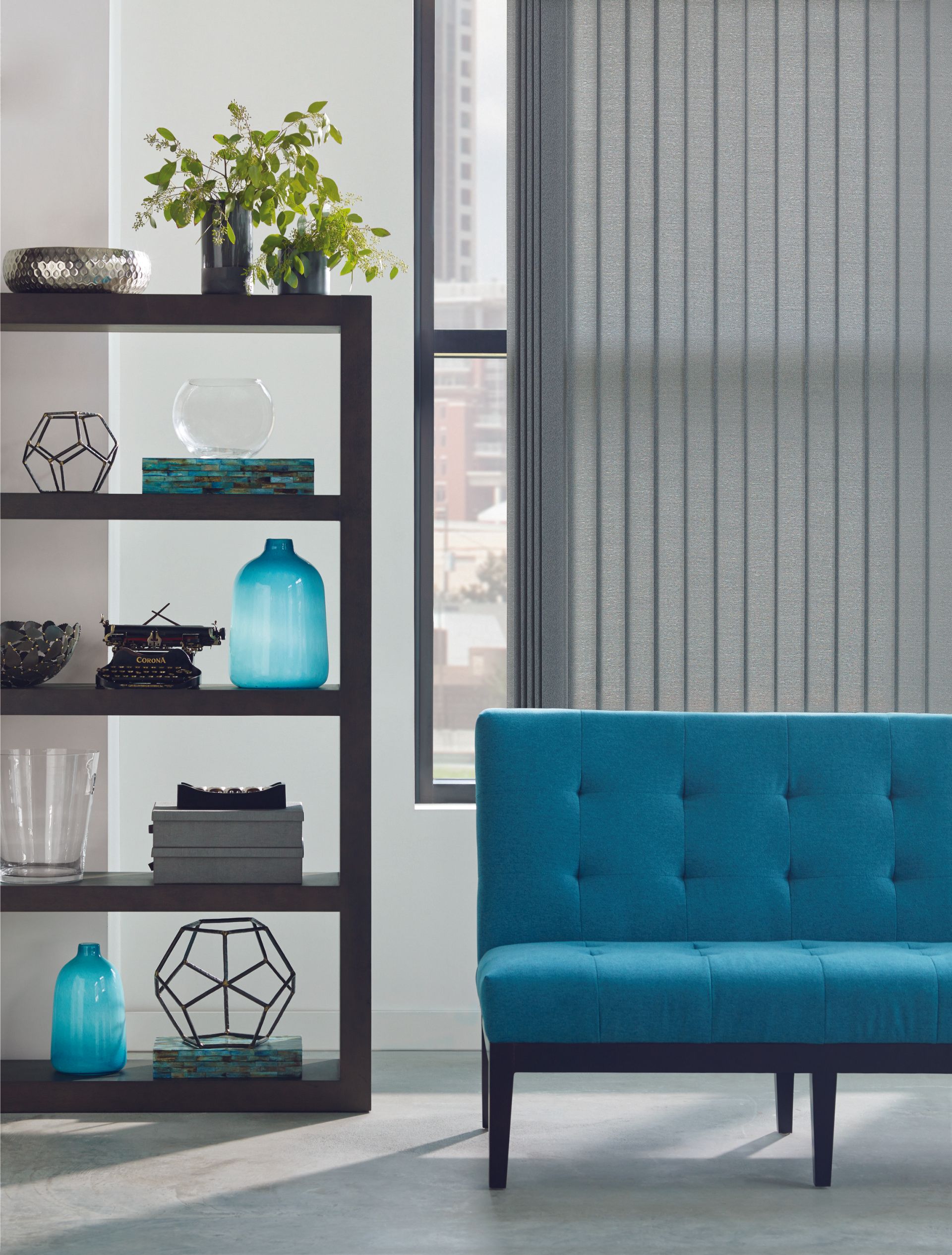 Easy, precise light control. Everything from sliding glass doors to bay windows look prettier with our Somner® Custom Vertical Blinds, which feature easy operation and superior light control. Available in a wide range of vinyl, fabric and aluminum styles and an impressive array of colors, textures and patterns.